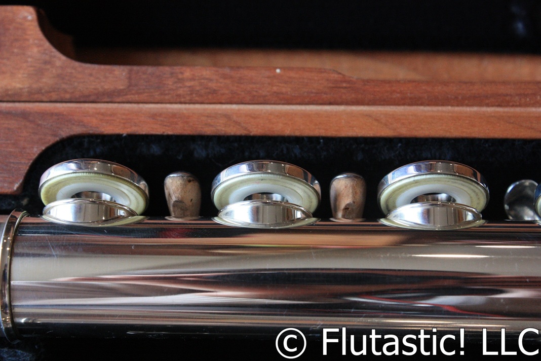 This flute has just been through the hands of my trusted technician, and it is in excellent used condition, including the pads. I had so much fun testing this flute! The balance of lows to highs, the rich tone colors and beautiful palette, and the smooth mechanism make it a joy to play! There are no major dings, dents or scratches, but only the usual very light surface wear seen on any used flute. Beautiful!